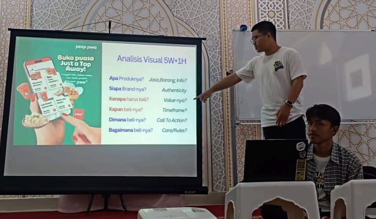 Di akhir sesi, peserta diberi tugas membuat satu desain promosi lengkap dengan warna dan font brand, yang kemudian akan dikoreksi melalui grup WhatsApp.
