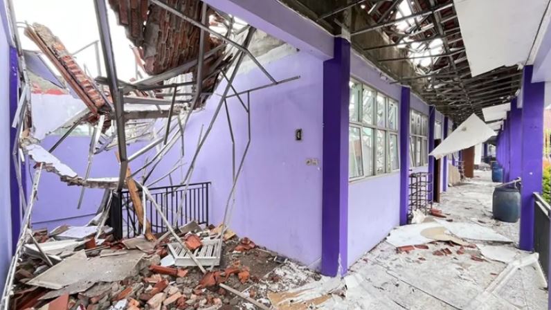 Meski demikian, kerusakan yang ditimbulkan tergolong serius. Rangka atap dan material bangunan jatuh ke bawah. Beberapa ruang kelas terdampak langsung. Area tersebut tidak lagi aman untuk digunakan.